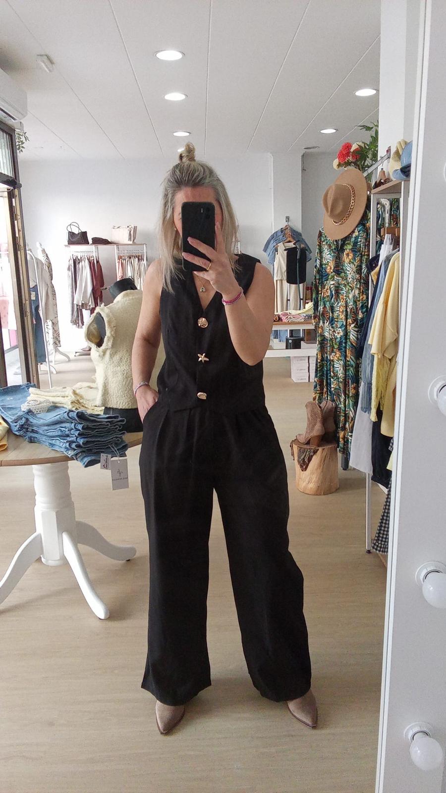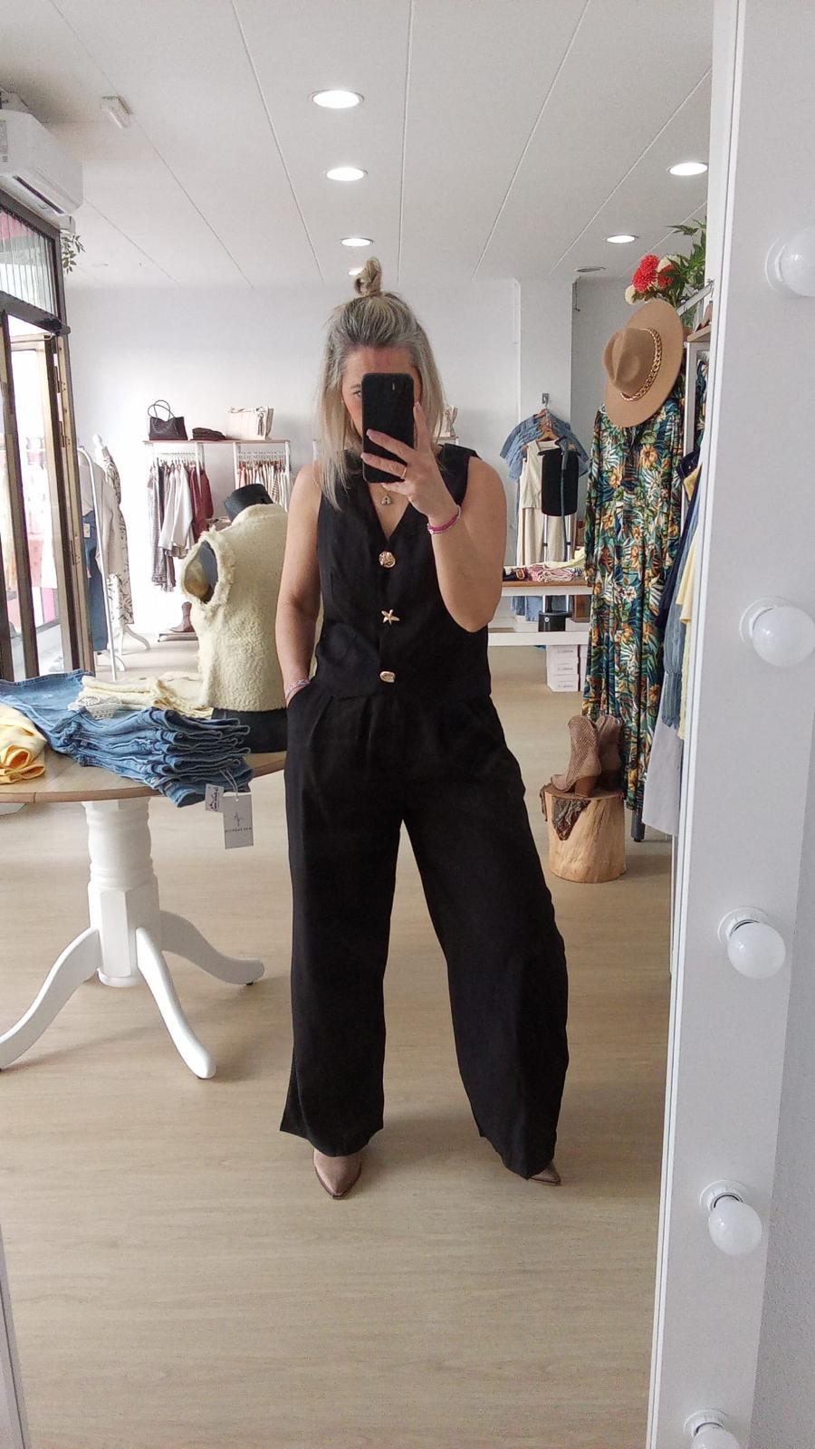 PANTALON FLUIDO,BOLSILLOS CREMALLERA,TREBILLAS,GOMA EN LA CINTURAY BOTON
