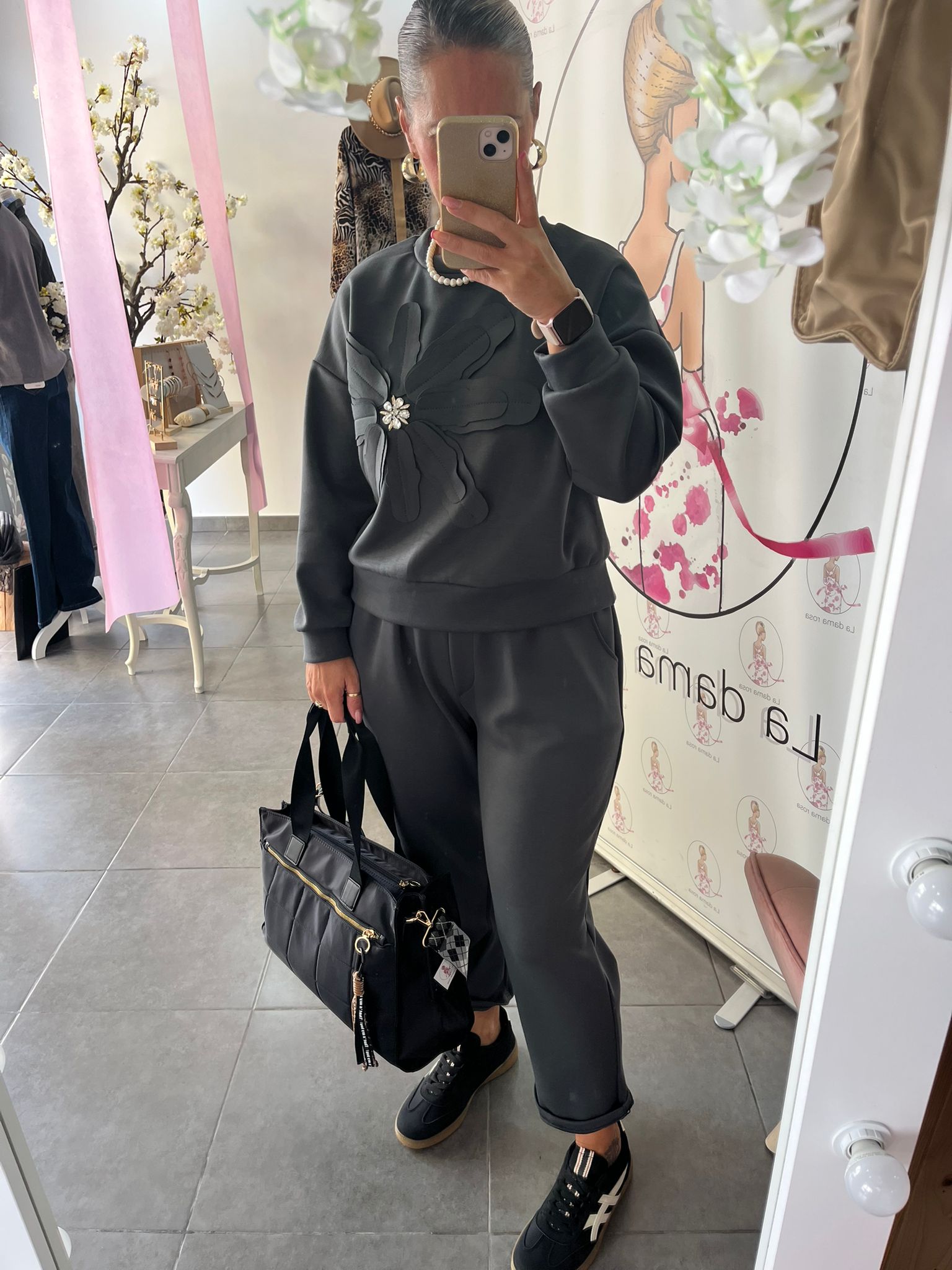 CONJUNTO COMPUESTO POR DOS PIEZAS,DETALLE DE FLOR EN 3D CON PIEDRAS,