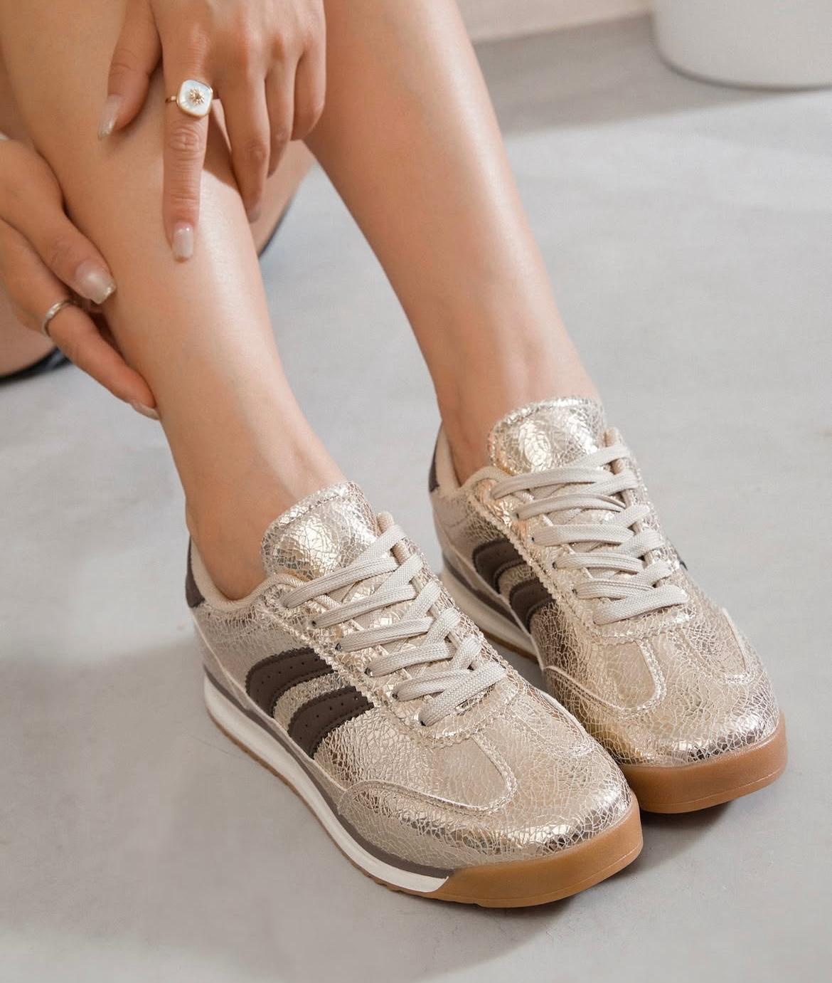 DEPORTIVAS DORADAS,CON DETALLE DE MARRON CHOCOLATE