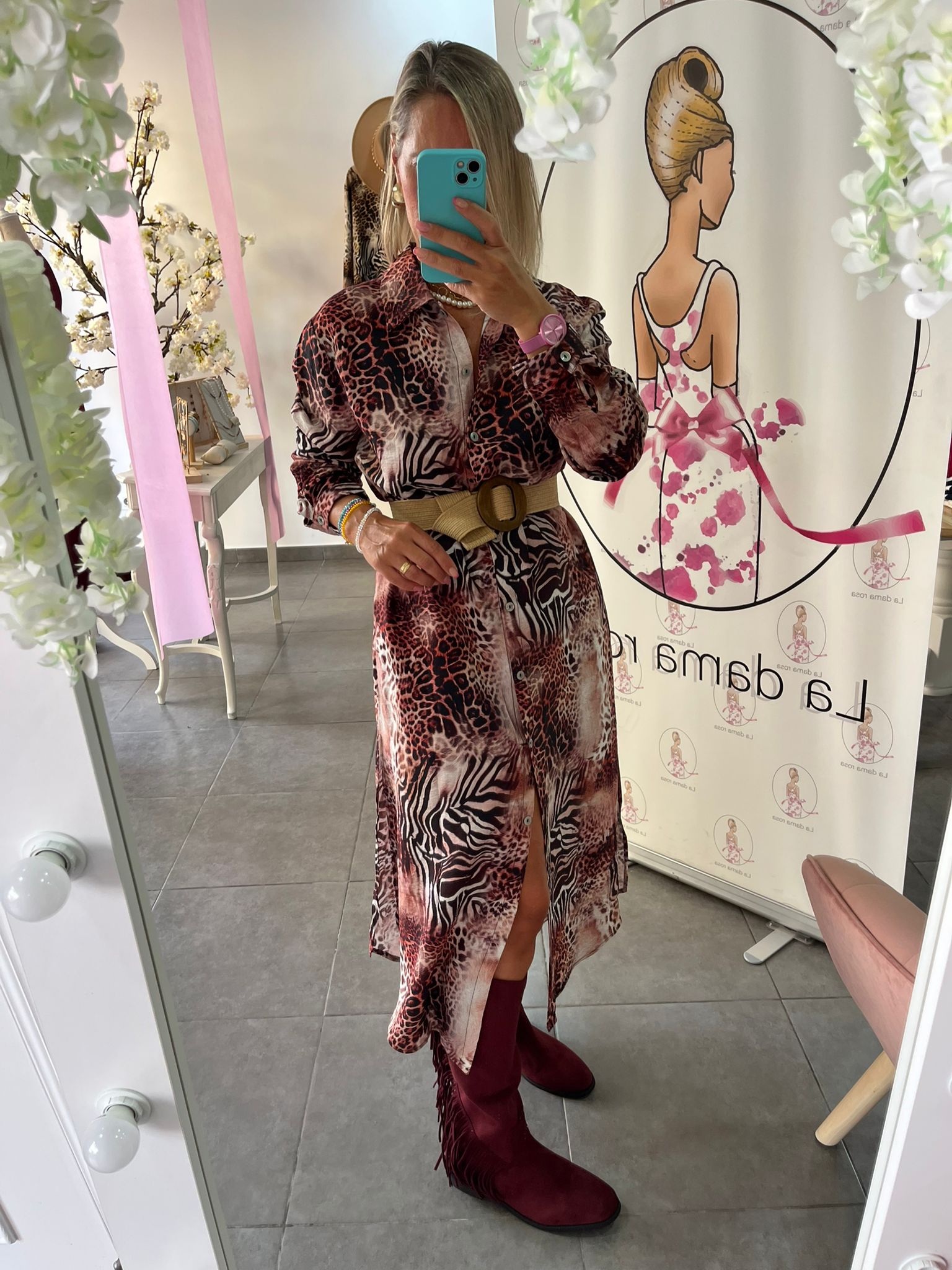 VESTIDO CAMISERA,ABOTONADO,SOLAPA,BOLSILLO EN LOS LATERALES Y CINTURON ELASTICO INCLUIDO